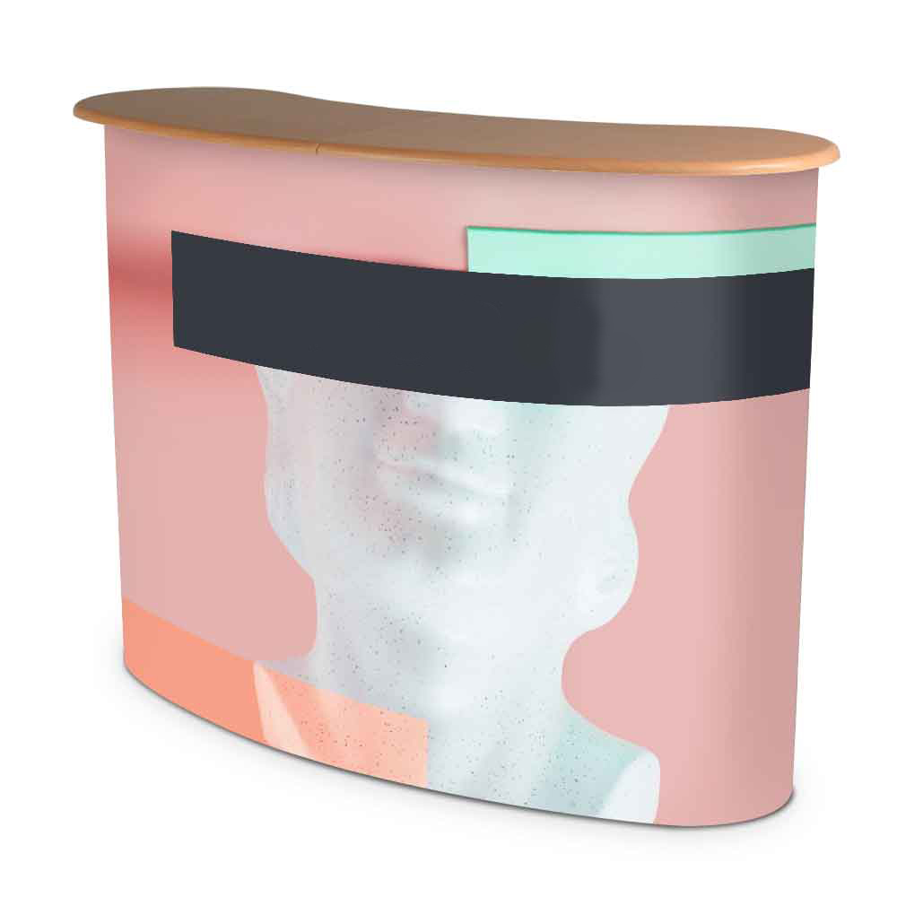 Die Messetheke Pop-Up ist eine leichte und zugleich robuste Falttheke, die sich mühelos aufbauen lässt.